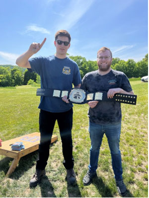 Every year we have our Annual CMT Cornhole tournament. All employees are welcome to hang out and eat some great food. Only the brave choose to compete! This past year we had a ton of fun and Mike and Jordan from our Engineering Team took the title and the belt. The winners get their names etched into the championship belt for all to see and it hangs up in their department. We are lucky to have such a great team that works hard and has fun together.